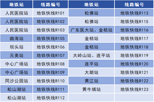 为加强轨道交通1号线公交接驳,方便市民出行,11月26日起,东莞巴士试运营21条地铁快线+8条接驳线。