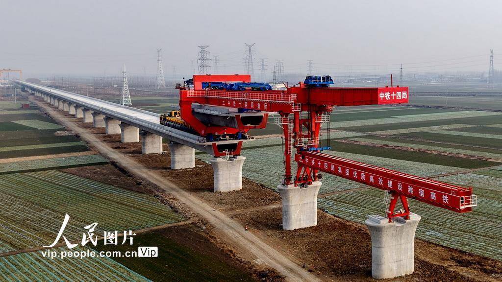 2026年1月31日,山东临沂潍宿高速铁路九标段箱梁架设施工现场一派繁忙,施工人员抢抓工期,全力推进工程建设。