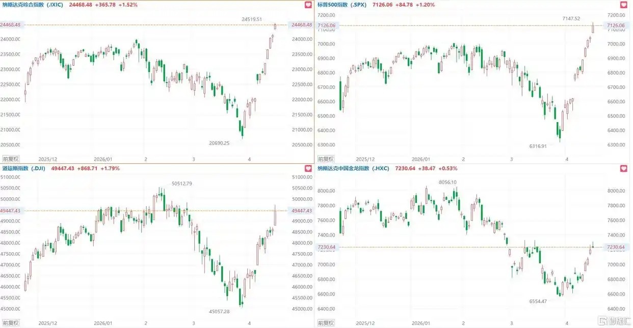 美国考虑解冻200亿美元以换取伊朗放弃浓缩铀库存前十证券公司,美伊冲突缓和预期升温,美股三大指数集体收涨,纳指涨1.52%,为连续13个交易日上涨续创新高,创下2013年以来最长连涨,本周累计上涨6.84%;标普500指数涨1.2%也创历史新高,本周累计上涨4.54%;道指涨1.79%,本周累计上涨3.19%。